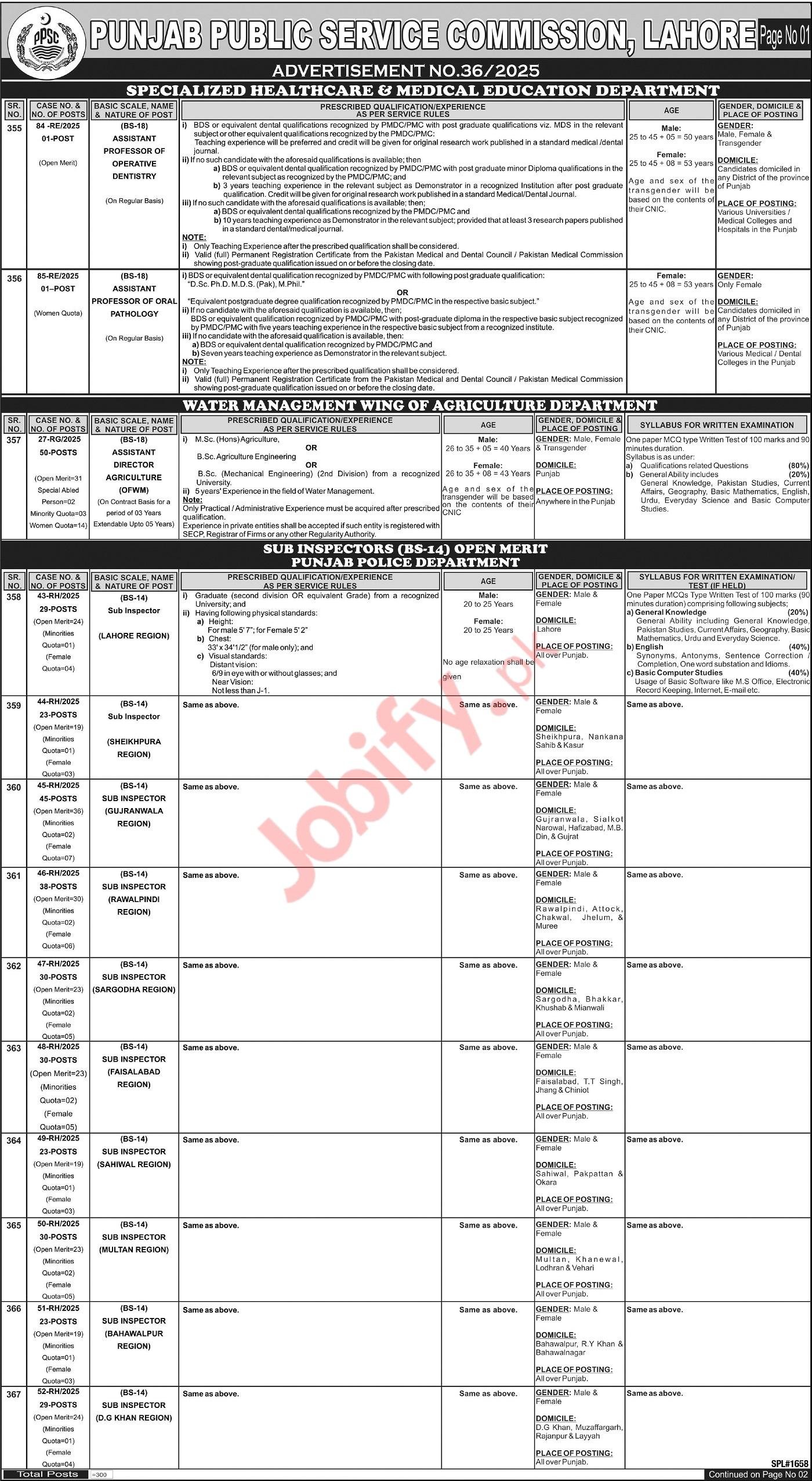 PPSC Sub Inspector (BS-14) Jobs 2025 โ Punjab Police (300 Posts) + Assistant Director Agriculture (OFWM) โ 50 Posts + Associate Professors (SH&ME), Lahore ๐